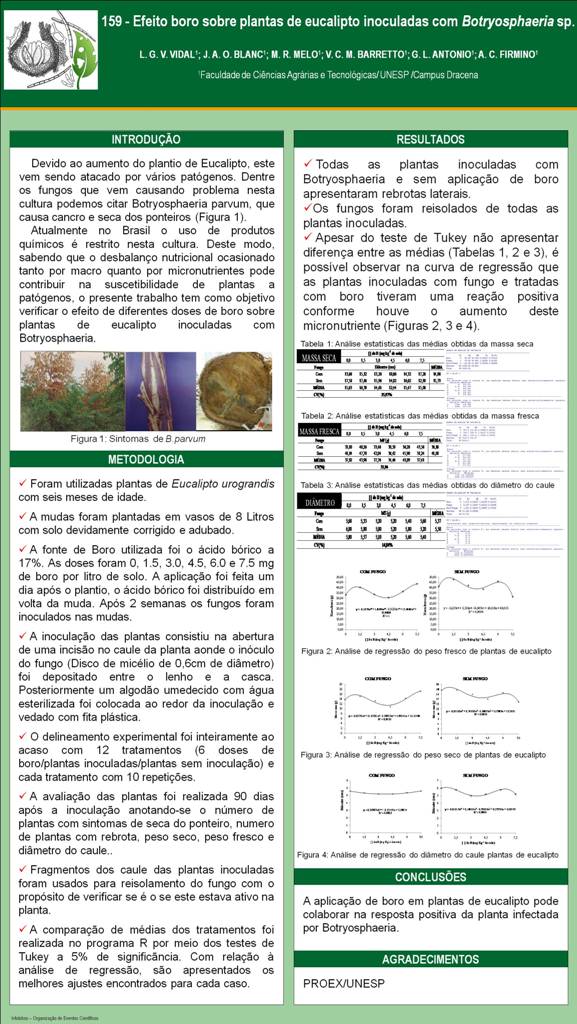 EFEITO BORO SOBRE PLANTAS DE EUCALIPTO INOCULADAS COM Botryosphaeria sp.