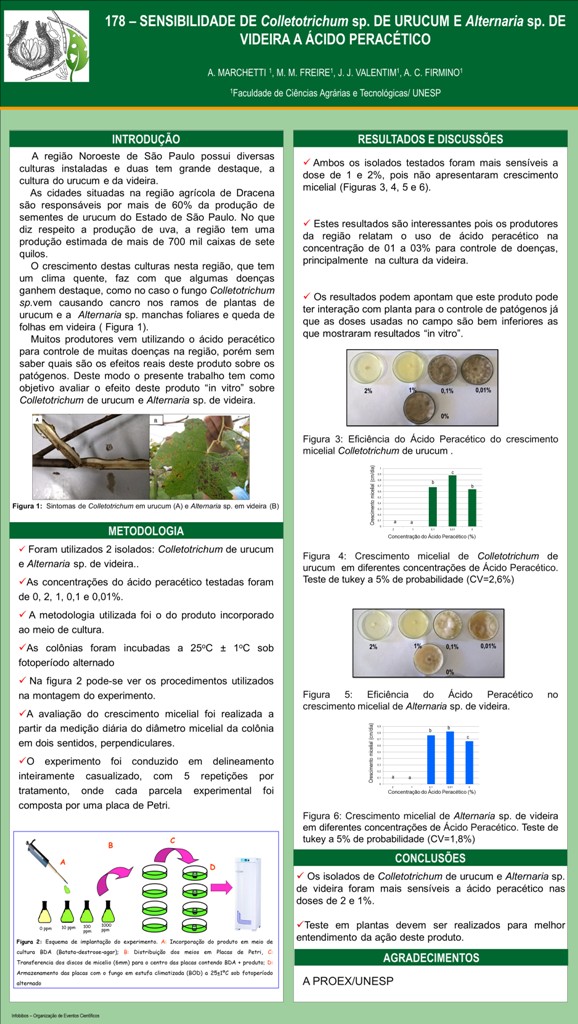 SENSIBILIDADE DE Colletotrichum sp. DE URUCUM E Alternaria sp. DE VIDEIRA A ÁCIDO PERACÉTICO