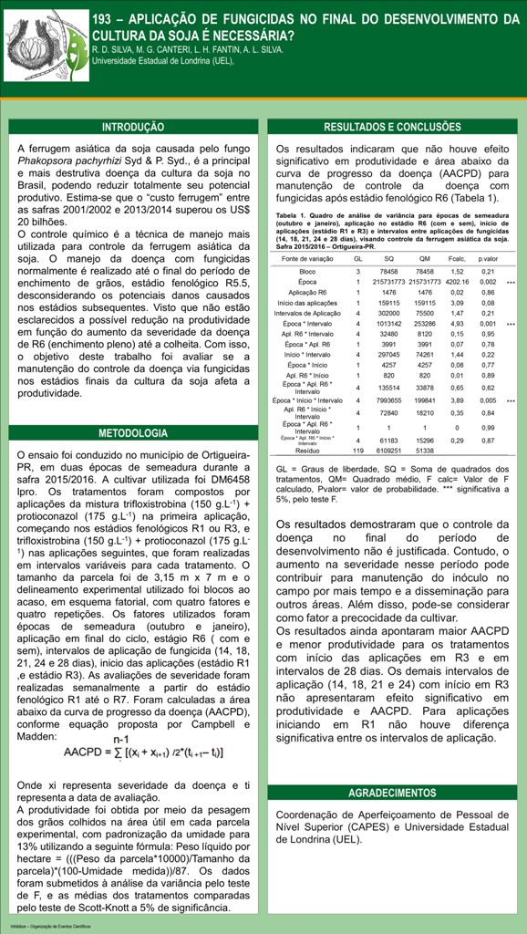 APLICAÇÃO DE FUNGICIDAS NO FINAL DO DESENVOLVIMENTO DA CULTURA DA SOJA É NECESSÁRIA?