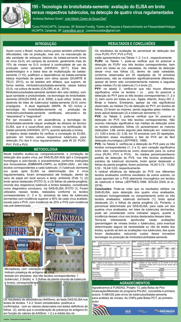 TECNOLOGIA DO BROTO/BATATA-SEMENTE: AVALIAÇÃO DO ELISA EM BROTO VERSUS RESPECTIVOS TUBÉRCULOS, NA DETECÇÃO DE QUATRO VÍRUS REGULAMENTADOS